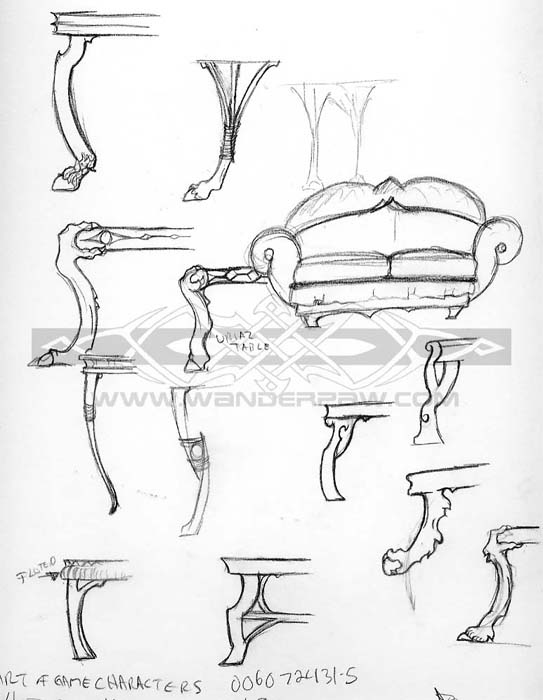 A selection of table legs and furniture for videogame backgrounds.