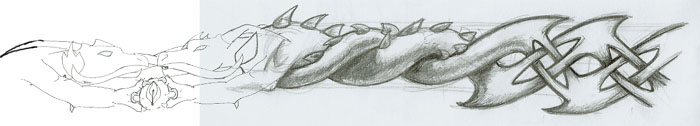 This one was a long-term drawing. After several redraws and a bit of Photoshop work, SUCCESS! It's an armband, designed as a tribute to the marriage of the client, and to cover up an unfortunate scar.